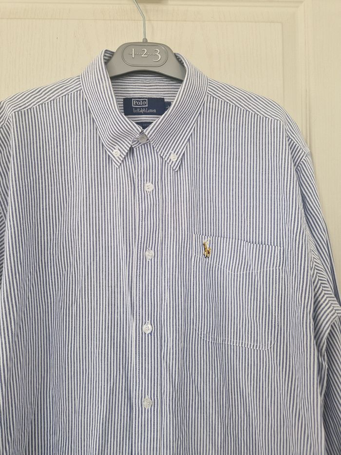 En très bon état, aucun défaut. Chemise blanche à rayure bleu Ralph laureen Taille L/40 100% coton