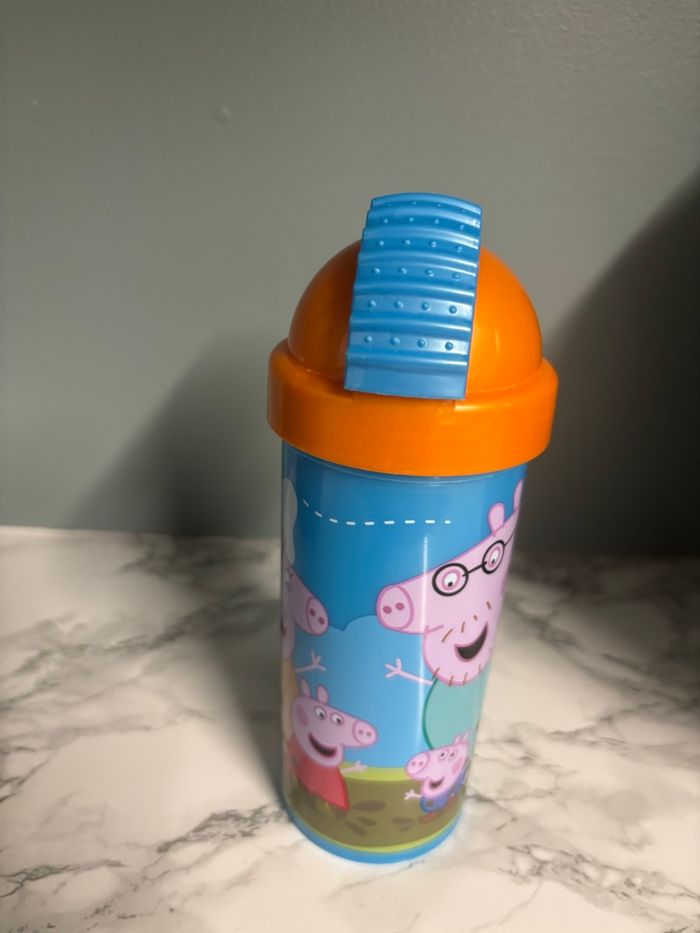 Je vends cette gourde Peppa Pig en plastique bleu et orange Matière : Plastique 20 cm État neuf