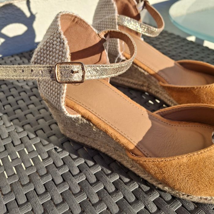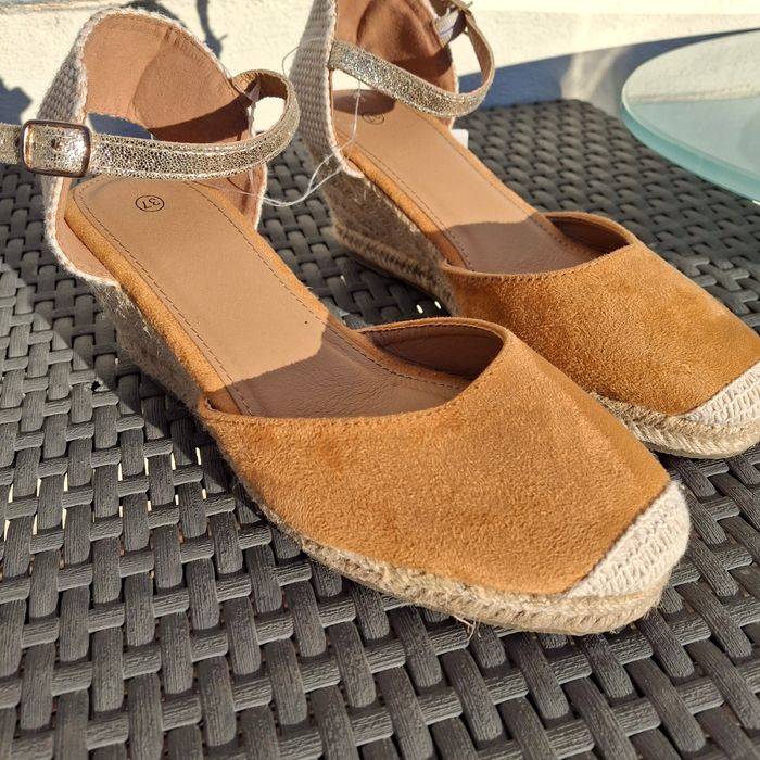 Espadrille Sandales Compensées en Daim Marron Neuve - photo numéro 1