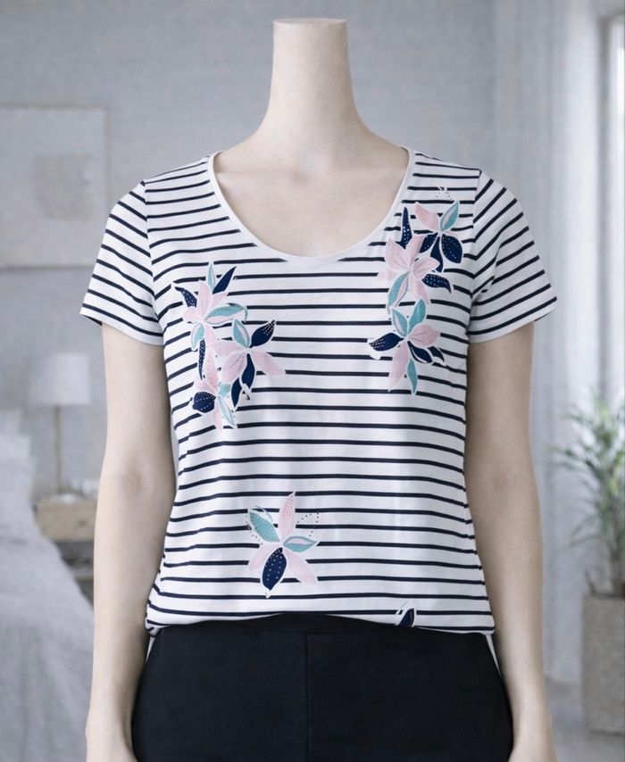 T-shirt Caroll bleu marine blanc imprimé taille 36 S  - photo numéro 2