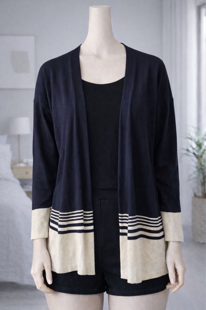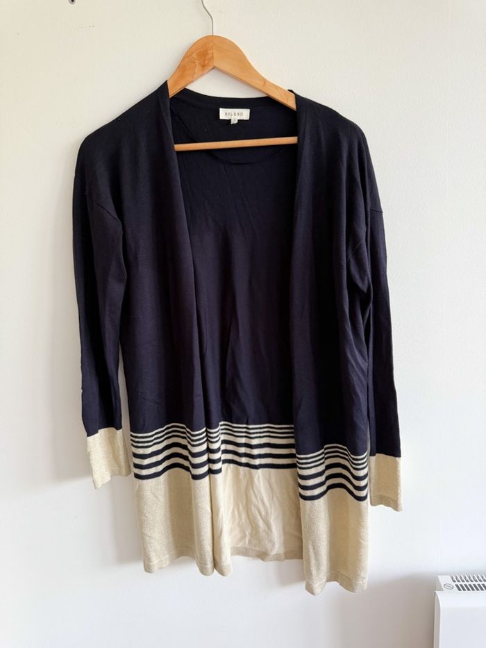 Gilet cardigan bleu marine beige paillette Bel&bo taille 36 S