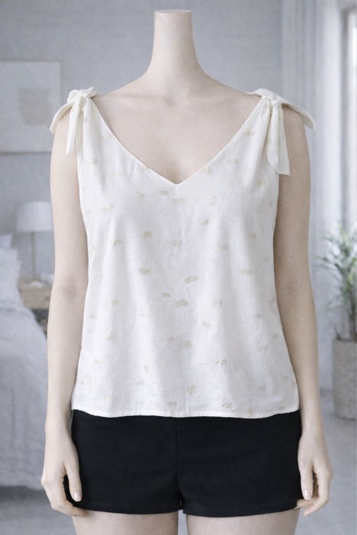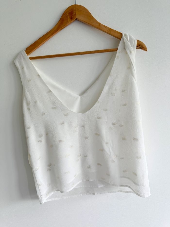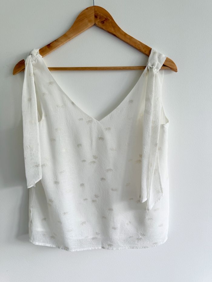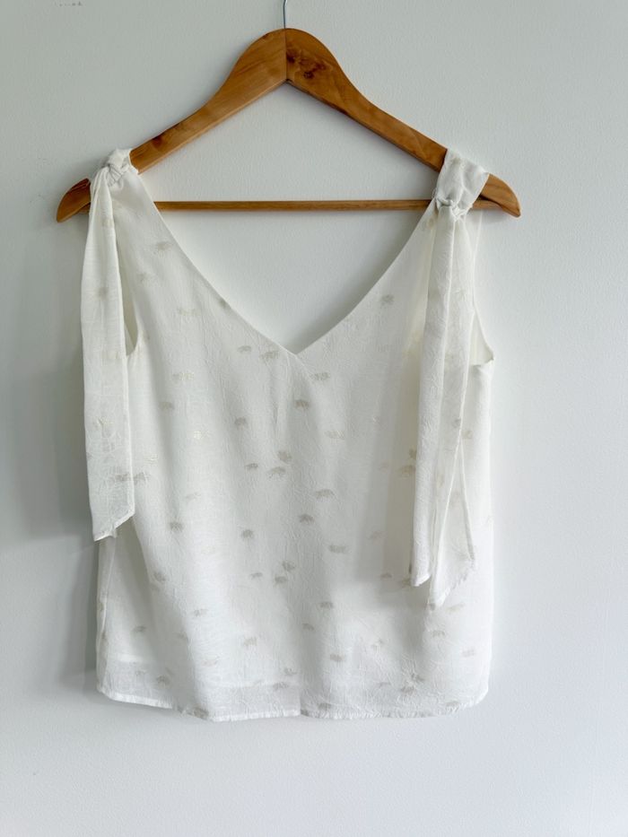 Top blouse blanche à motifs doré taille 36 S  - photo numéro 6