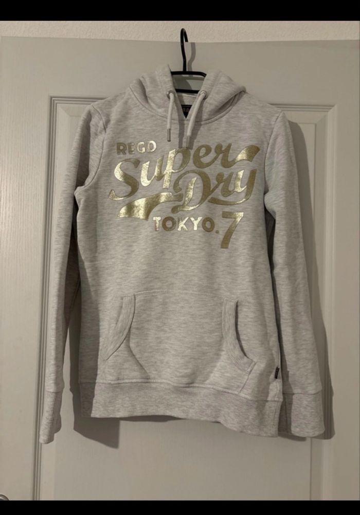 Sweat à capuche Superdry gris – Taille S/36 Sweat à capuche Superdry gris clair avec inscription dorée Tokyo 7 sur le devant. Très joli, confortable et chaud, parfait pour la mi-saison ou l’hiver. ✨ Détails : • Marque : Superdry • Couleur : gris clair / écriture dorée • Capuche avec cordons • Poche kangourou • État : neuf porté 1 fois