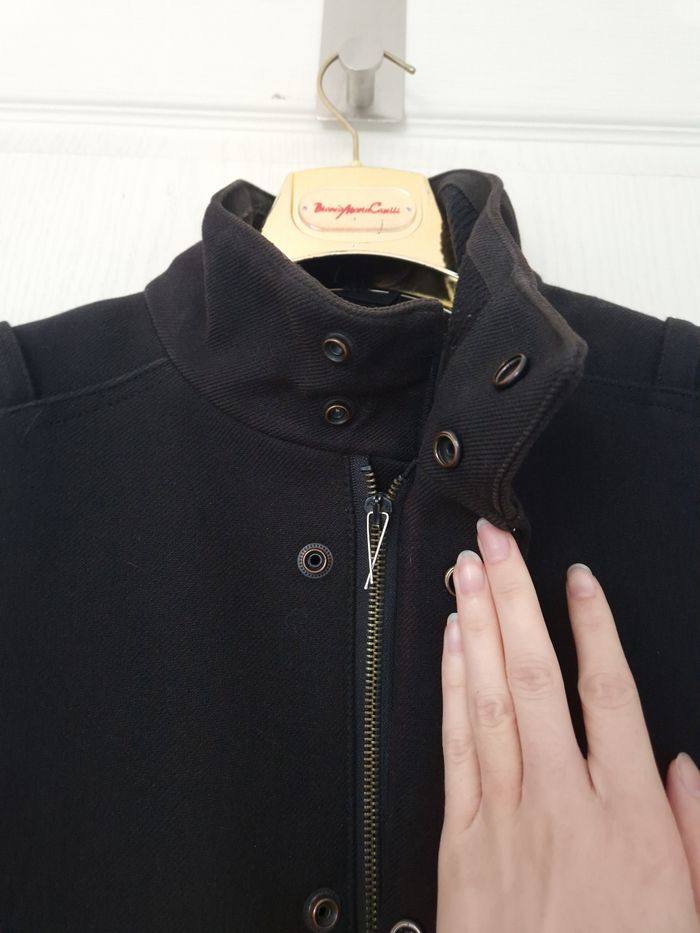 Manteau en très bon état. Ce ferme avec une fermeture éclair ou avec des pressions. Il manque la tirette (4 ème photo), on a mis autre chose à la place ce qui ne ce vois pas une fois le manteau fermer. Il y a 2 grande poches à l'extérieur et 4 à l'intérieur. Composé de 52% de coton et de 18% de laine. Celio Taille S/36