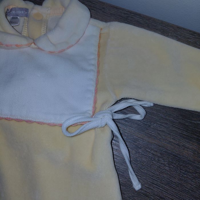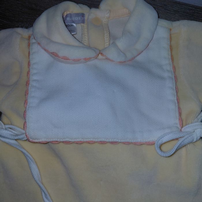 Vert Baudet Taille naissance / 50 cm Joli pyjama en coton velours jaune poussin Petit col Claudine Petit plastron "bavette" avec liens devant État proche du neuf