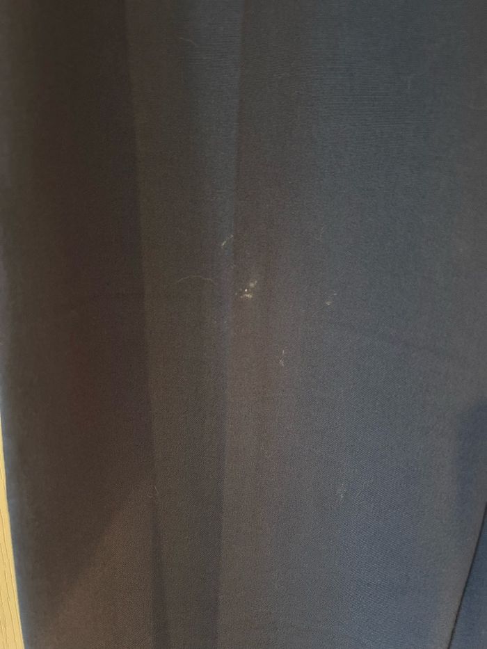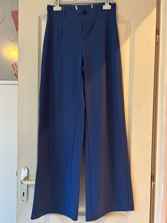 Pantalon habillé bleu marine Étiquette taille, marque coupé Voir taches que photo
