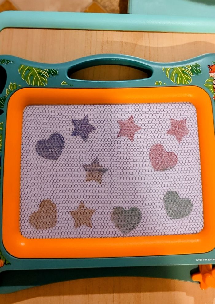 Vends une grande et belle 🐦 ardoise magique de la Pat Patrouille 🐾🐕 Avec ses deux tampons effaçables en forme d'étoile ✨ et de cœur ❤️ et son stylo magique 🌈 effaçable à l'infini. Très pratique 🌸 car pas de salissure ni sur les vêtements, ni sur la table 🎈 Munie d'une poignée et donc facilement transportable partout 🚗 De belles couleurs 🌈 bleu, rouge 🎈 et vert (voir photos). 🐕 Mesures 🐾 32 cm de largeur 24 cm de hauteur Etat quasiment neuf ✨ aucun défaut. Prix : 8.5€