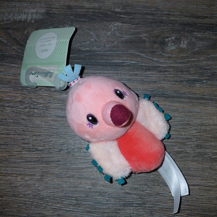Lilliputiens Mini hochet Anaïs flamant rose Matière: 100% polyester Couleur – Anaïs Mini-hochet Dimensions (L x l x H cm): 8x6x0 Marque – Lilliputiens Neuf avec étiquette