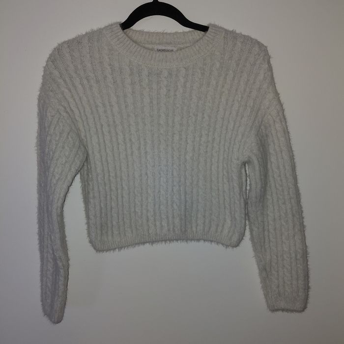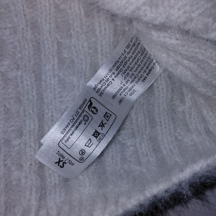 Cache Cache Taille XS Pull court ( hauteur 43 cm) Gris avec torsades 54 % acrylique 46 % polyamide, il ne gratte pas Tres bon état, peu porté