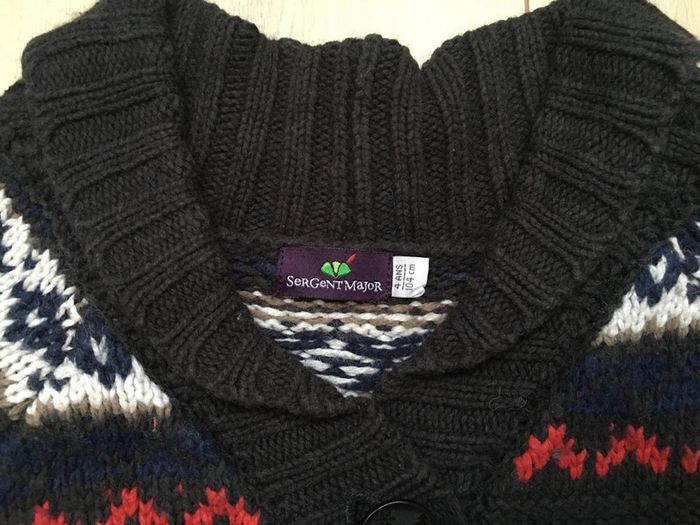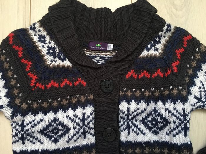 Gilet épais avec ceinture, 4 ans, Sergent Major. Souvent porté, le gilet présente des signes d’usure. Il n’y a pas de tâche ni de trou. La ceinture peut s’enlever, elle n’est pas cousue. #aureliem5_vetements4ans