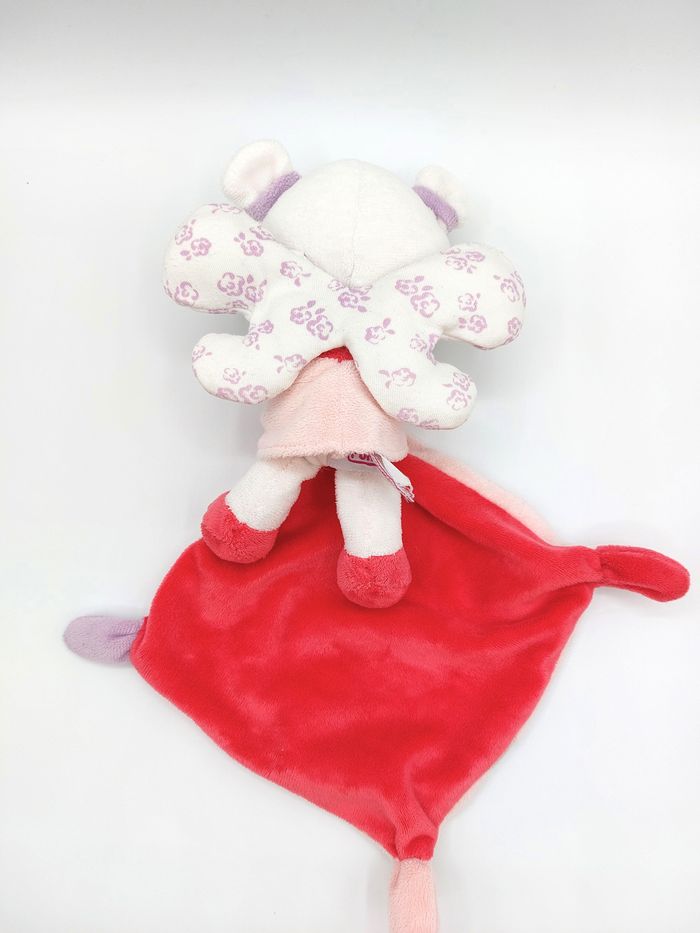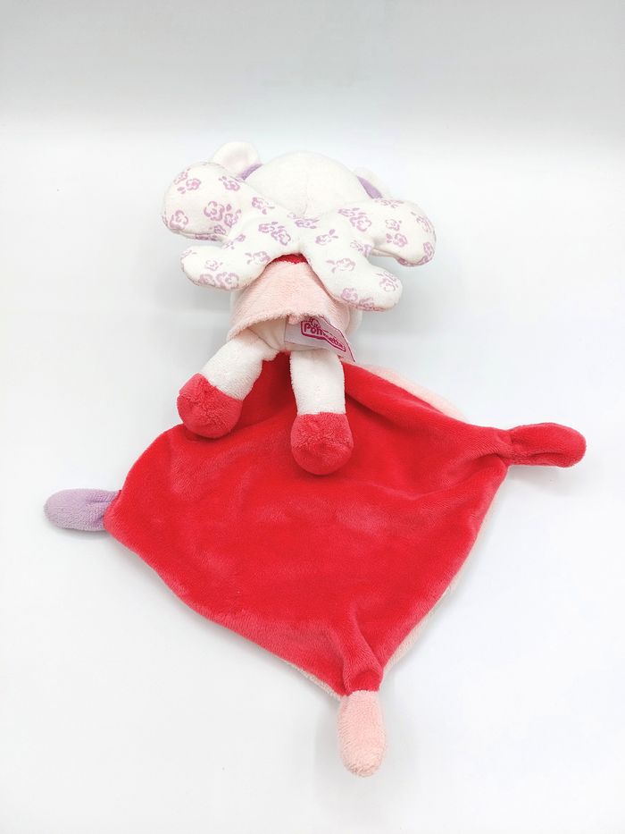 Doudou peluche ours blanc rose POMMETTE mouchoir fleurs j’appartiens à ailes mauve Intermarché - photo numéro 1