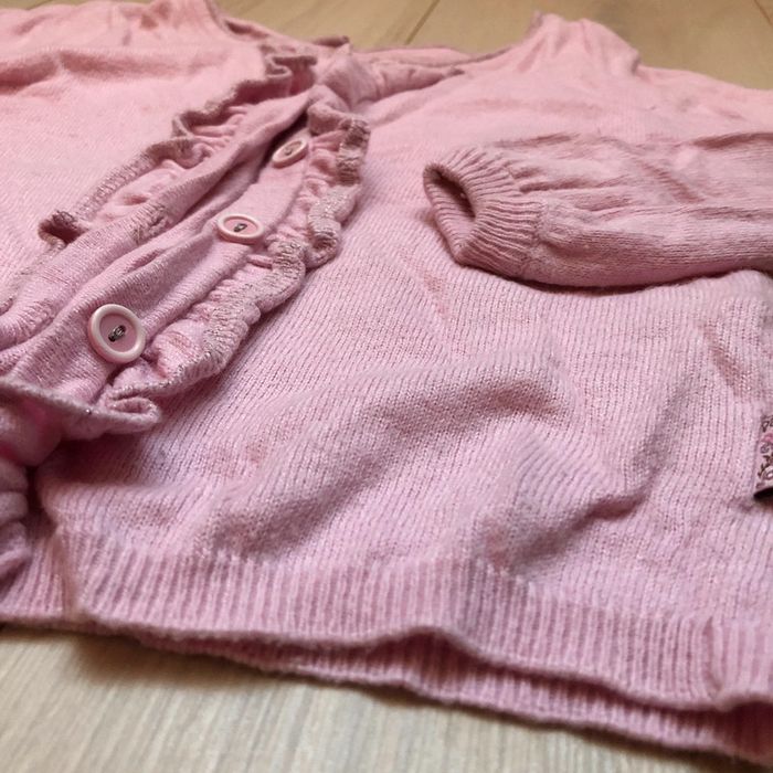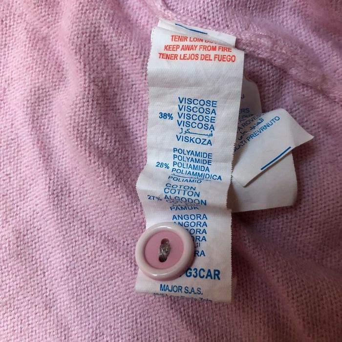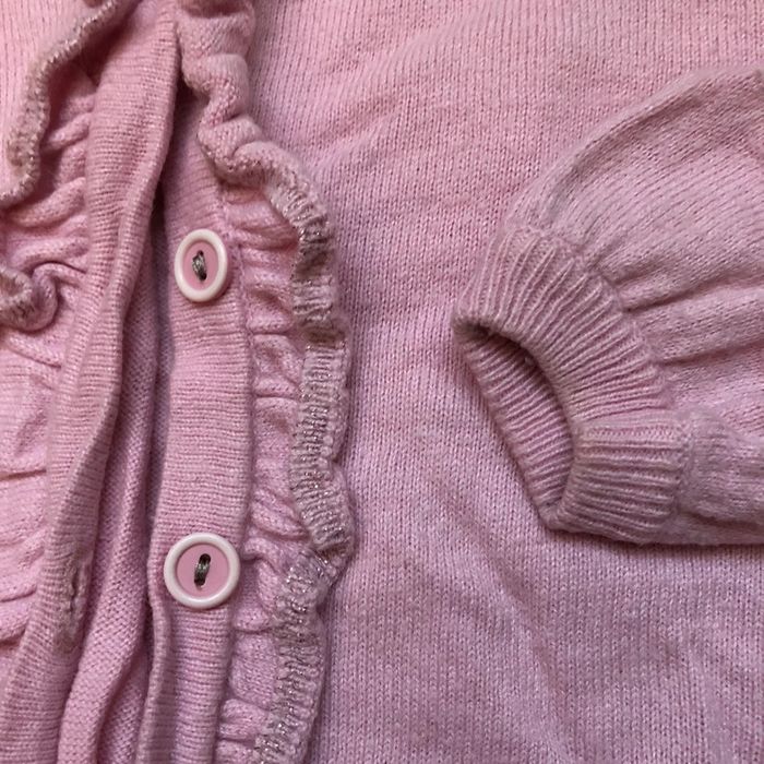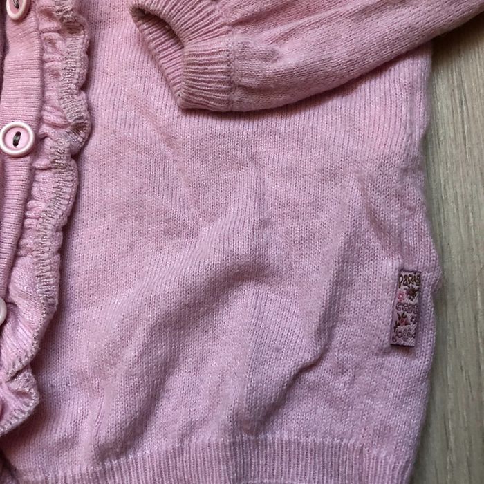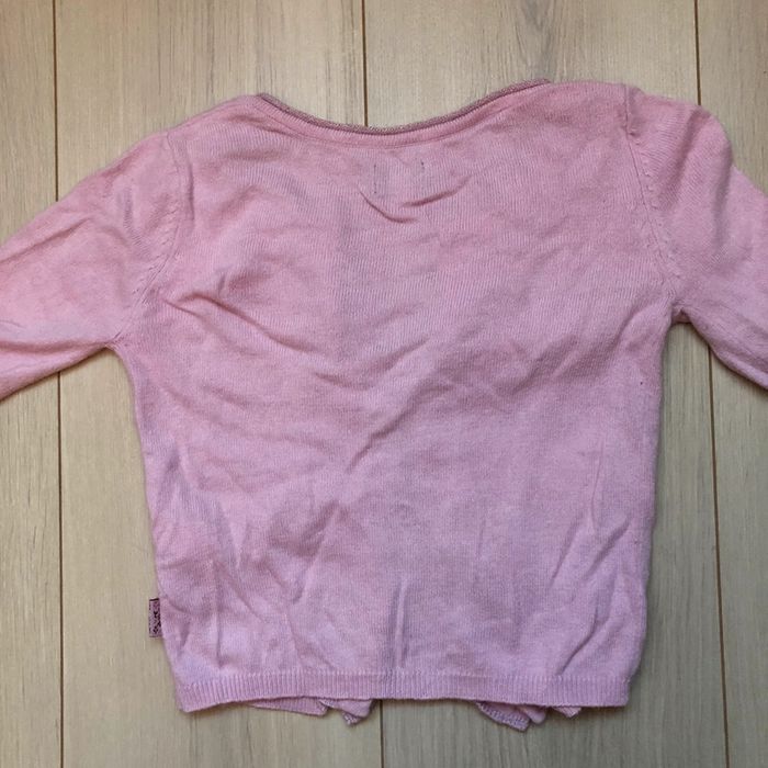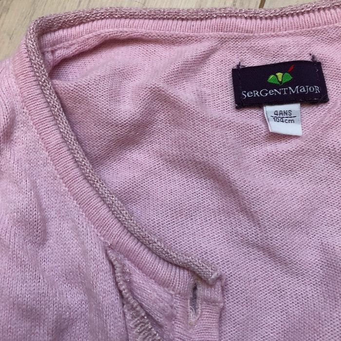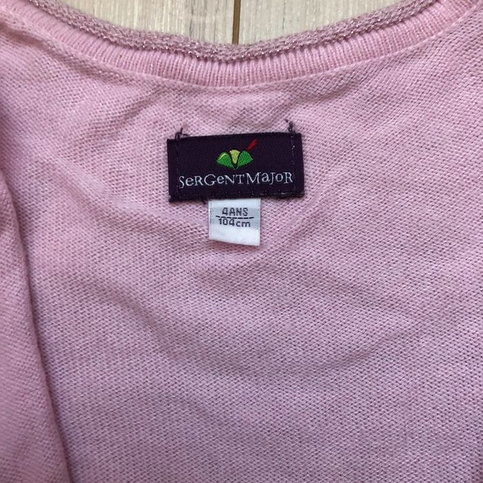 Gilet rose clair, 4 ans, Sergent Major. Il y a un bouton de rechange sur l’étiquette. Souvent porté, le gilet a des signes d’usure. Il n’y a ni trou ni tâche. #aureliem5_vetements4ans