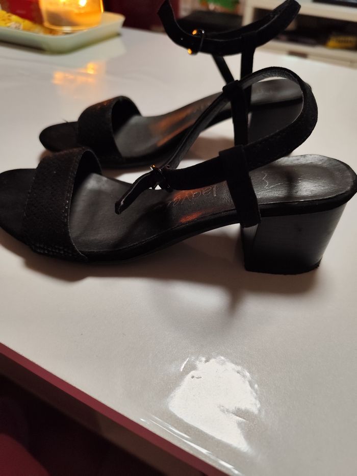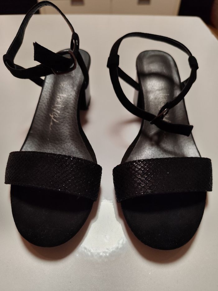 Nu pieds noirs Pointure 37 Un petit talon Noirs effet croco sur le dessus Très peu porté N'hésitez pas à regarder mon dressing pour faire un lot