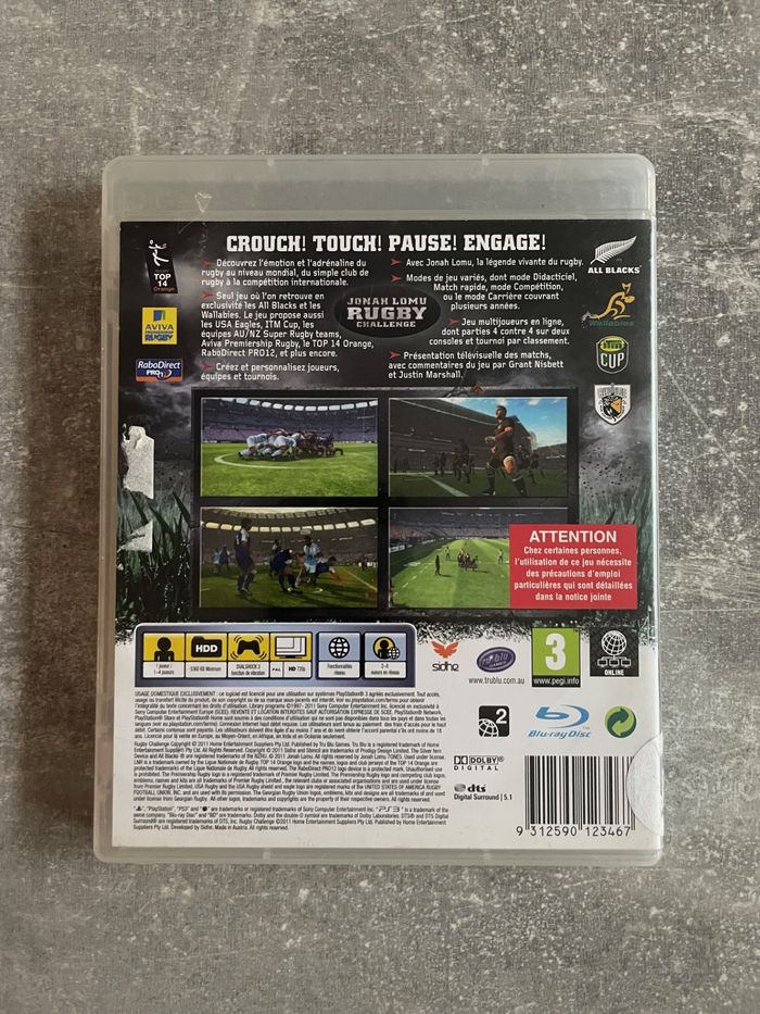 Jeu pour sony PS3, Jonah Lomu rugby challenge en français. Bon état. Pas de notice. Envoi rapide et soigné.
