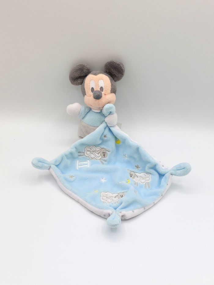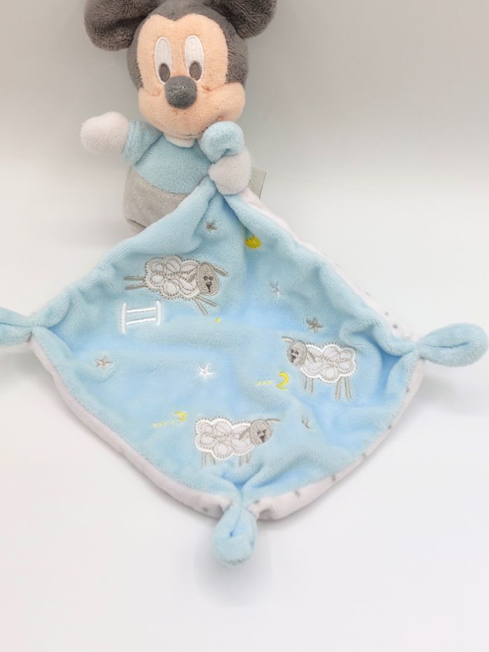 Doudou peluche Mickey DISNEY BABY mouchoir bleu ciel blanc étoiles lune moutons 1 2 3 - photo numéro 1