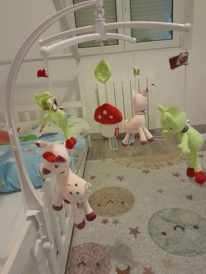 Mobile avec fixation pour lit à barreaux