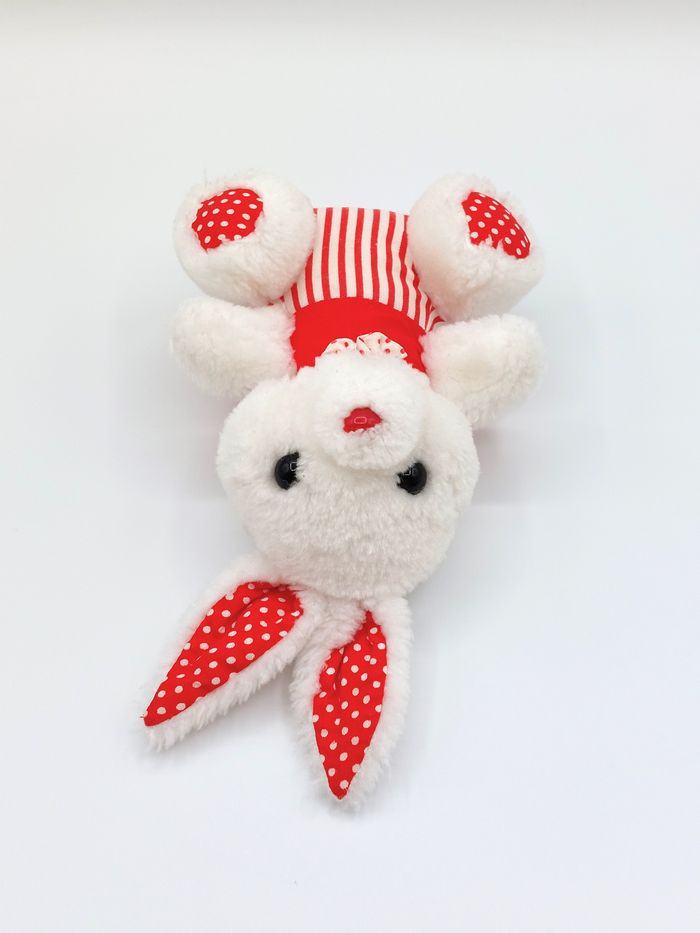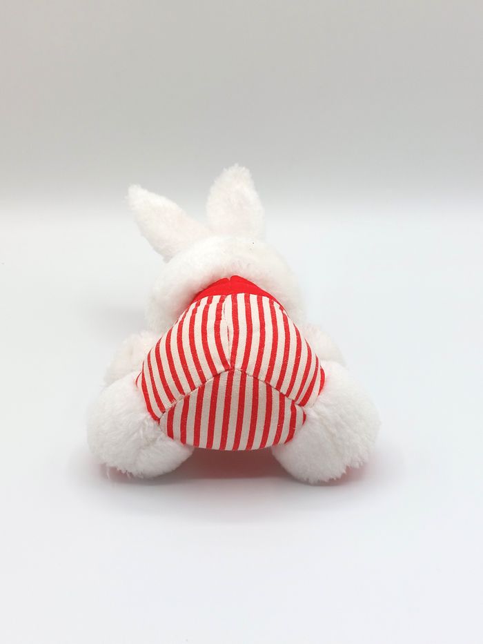 Petite peluche ancien doudou lapin blanc rouge nœud pois rayures 20 cm vintage - photo numéro 1