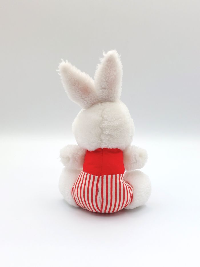 Petite peluche ancien doudou lapin blanc rouge nœud pois rayures 20 cm vintage - photo numéro 3