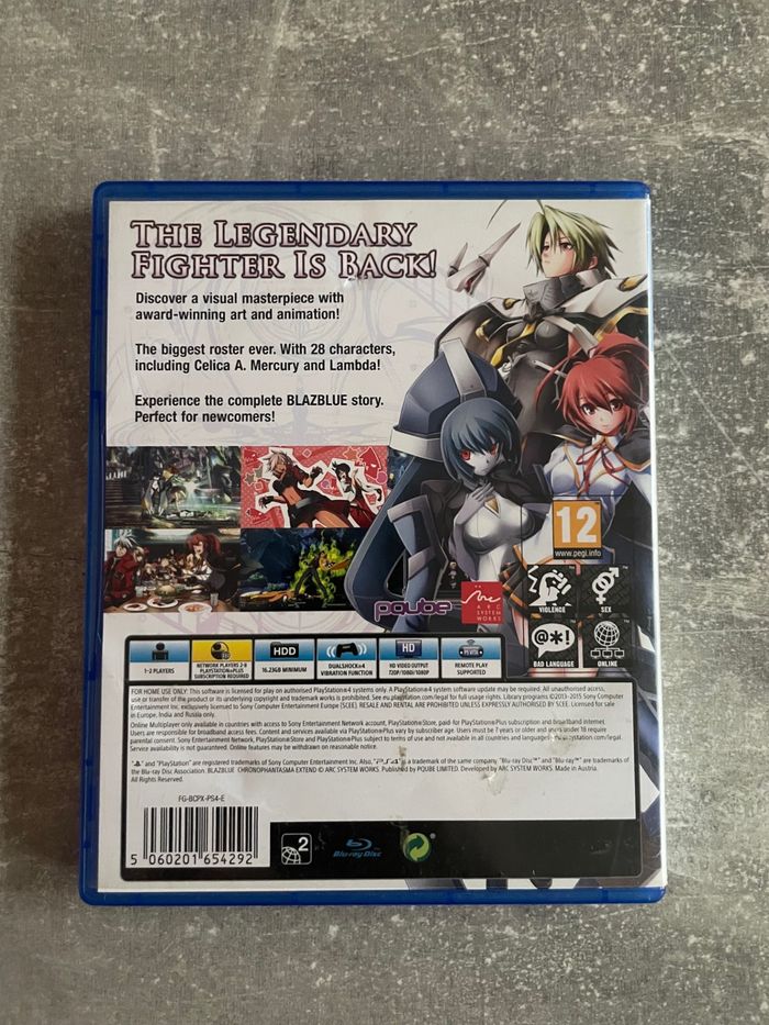 Jeu pour sony PS4, Blazblue chronophantasma extend en anglais. Bon état. Envoi rapide et soigné.