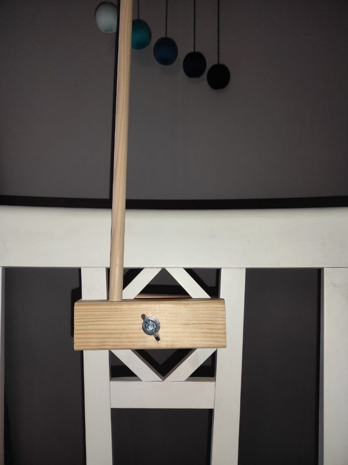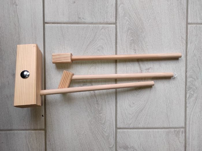 Support pour mobiles bébé. Idéal pour mobiles Montessori. Support à accrocher aux barreaux d'un lit ou d'un parc pour bébé. Support fait maison. Support vendu seul sans mobile. Support vendu démonté, à assembler avec un petit marteau.