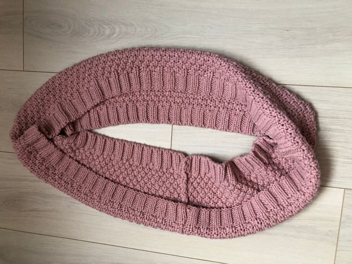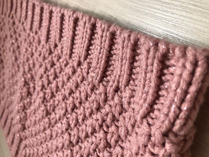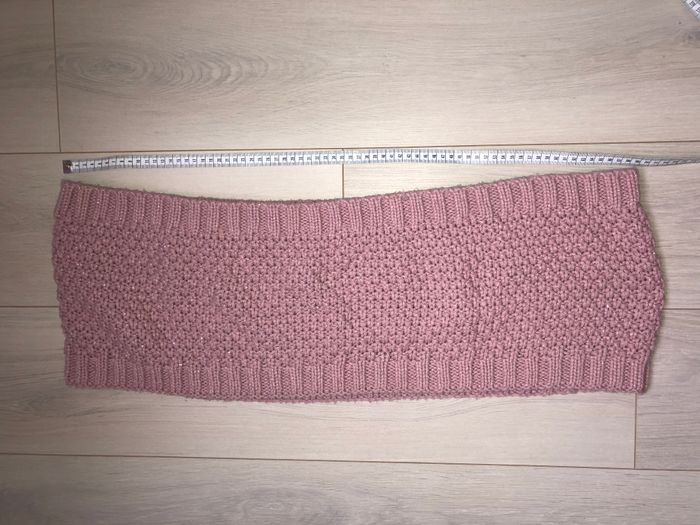 Écharpe tour de cour, rose poudrée avec petits fils brillants, 70 cm de long et 26 cm de large, Tex #aureliem5_bonnet_écharpe_gants