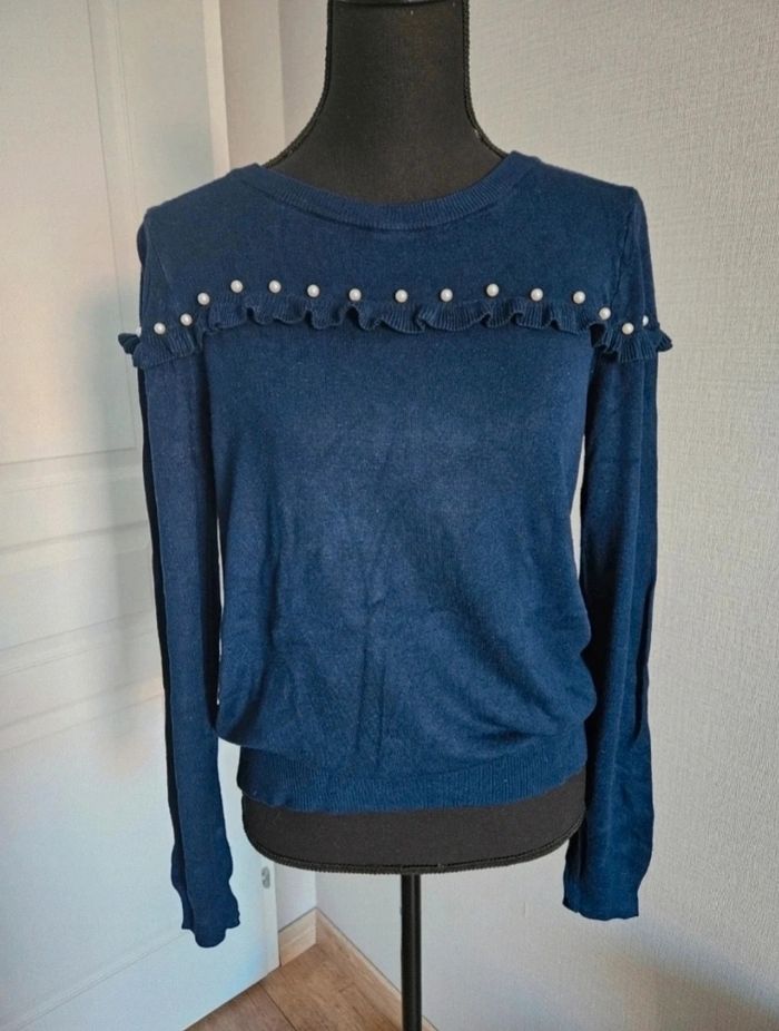 Pull Naf Naf col rond bleu marine taille 38 / taille M Ligne volantée avec perles sur le devant Très bon état #flagadajonestaille38 #nafnaf38 #pulltaille38 #pullnafnaftaille38 #pullnafnaf38
