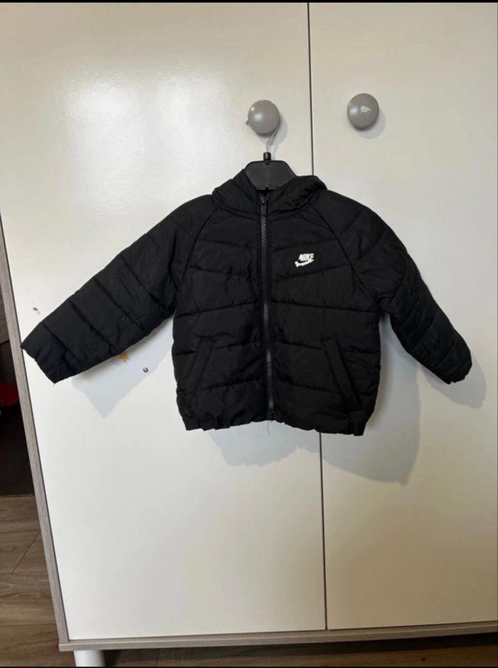 Veste Nike enfant – noire – 2 ans 📝 Description : Veste Nike pour petit garçon, chaude et légère. Portée mais en très bon état général. ⚠️ Le logo Nike est partiellement effacé sur la poitrine (voir photo). Cela n’affecte absolument pas l’utilisation, juste un petit défaut esthétique.