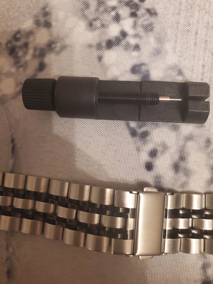 Bracelet montre métal argent et noir 22mm de largeur Neuf dans l emballage avec accessoires pour mettre ou enlever des maillons