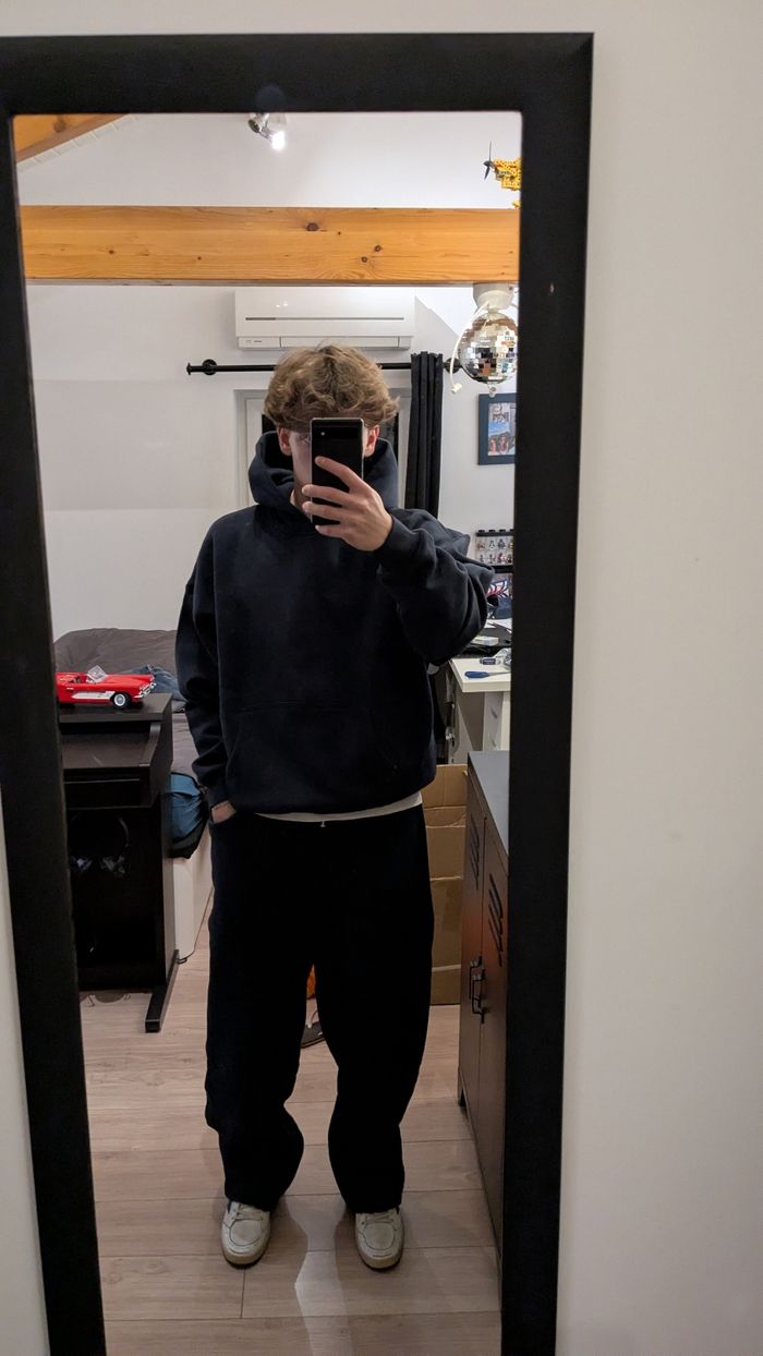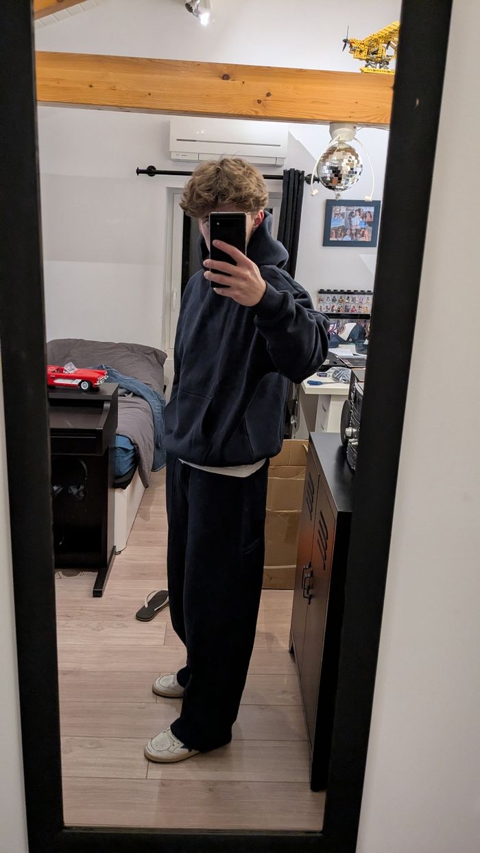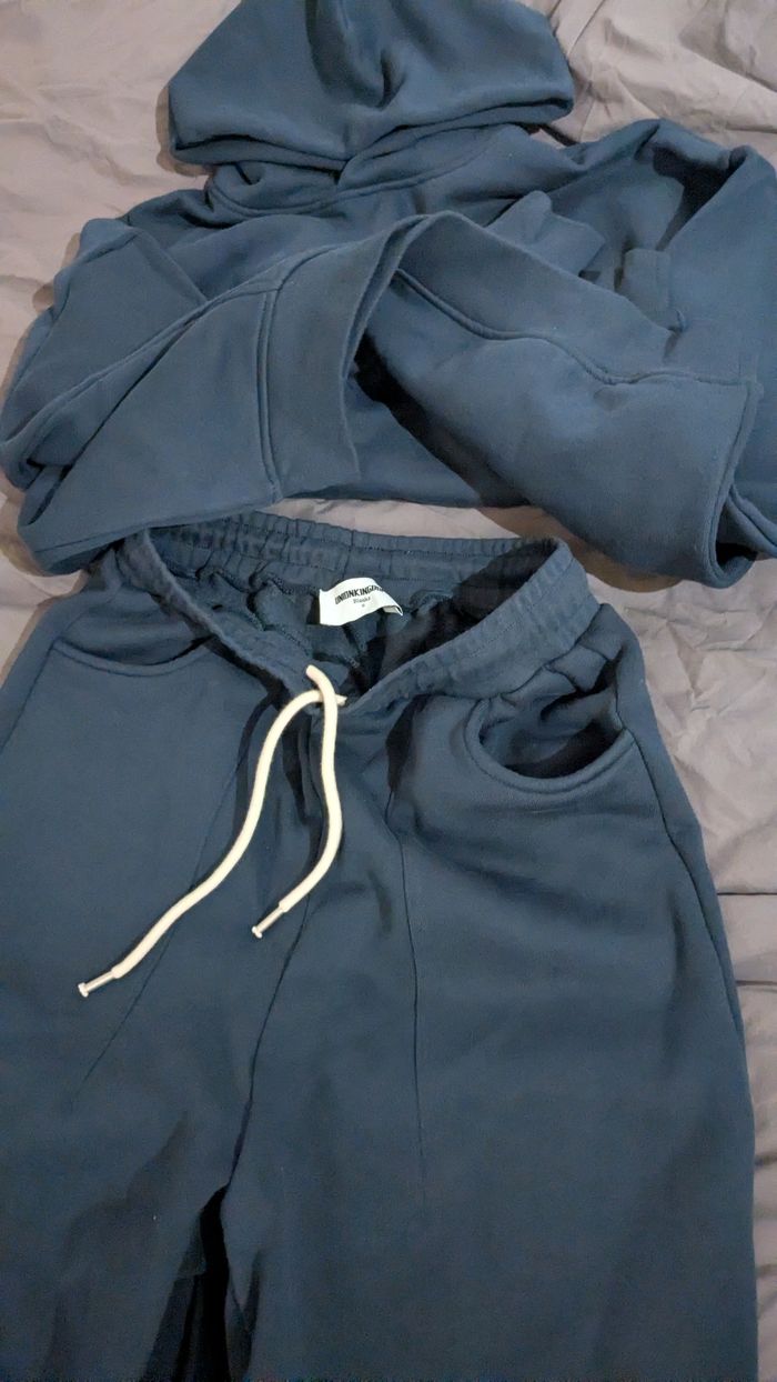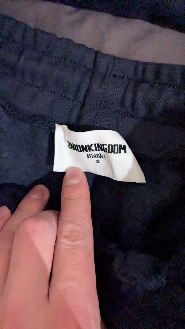 Ensemble de survêtement. Marque : Union Kingdom Taille : S Grammage : 520g/m² État : Neuf avec étiquette. Couleur : Bleu marine