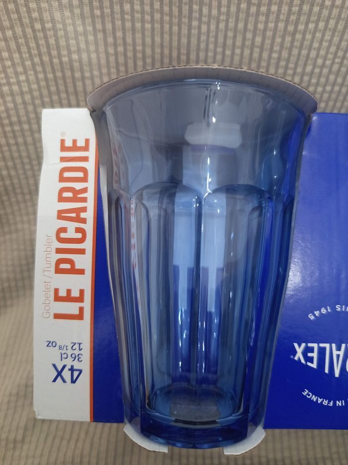 Lot de 4 verres Duralex Le Picardie – 36 cl – Bleu Description : Vends lot de 4 verres Duralex Le Picardie en verre bleu, capacité 36 cl (12 1/8 oz). Verres iconiques, robustes et élégants, en verre trempé – fabrication française 🇫🇷. Idéals pour l’eau, les sodas ou les boissons du quotidien. État : Neufs (encore dans leur emballage d’origine). Marque : Duralex Modèle : Le Picardie Capacité : 36 cl Quantité : 4 verres Couleur : Bleu 📦 Remise en main propre ou envoi possible. 💬 N’hésite pas à me contacter pour plus d’informations.