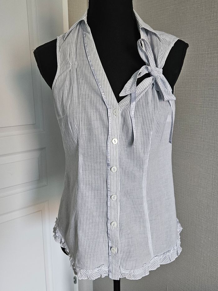 Chemisier sans manche Esprit rayé bleu clair et blanc taille 38 - photo numéro 2
