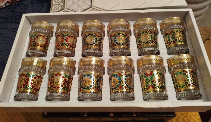 ✨ Jolie service à thé 12 verres Motifs dorés Tout neuf ✨🥰