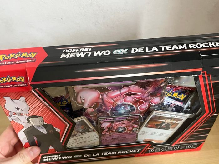 Pokémon Coffret Mewtwo de la Team Rocket 🔍 | Neuf et sous scellé ⚠️ | Défaut de scellage Contient : - 1 booster forces temporelles ev5 - 1 booster aventures ensemble ev9 - 2 booster team rocket ev10 Remise en main propre sur paris uniquement ✅ Envoyez moi un message pour plus d'informations