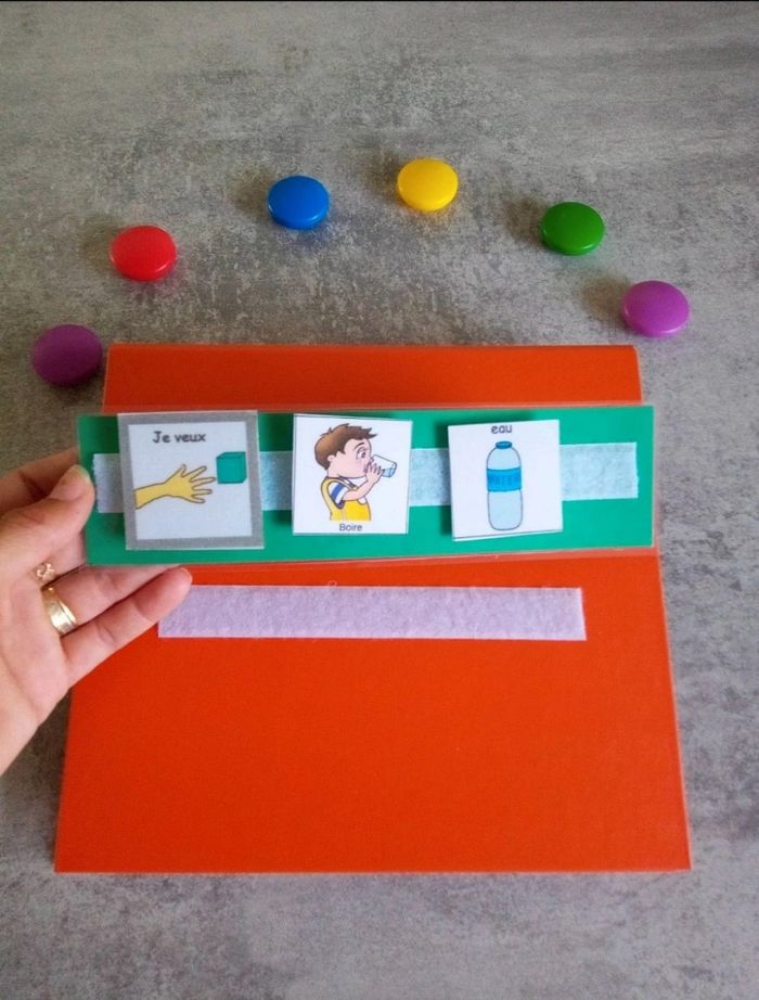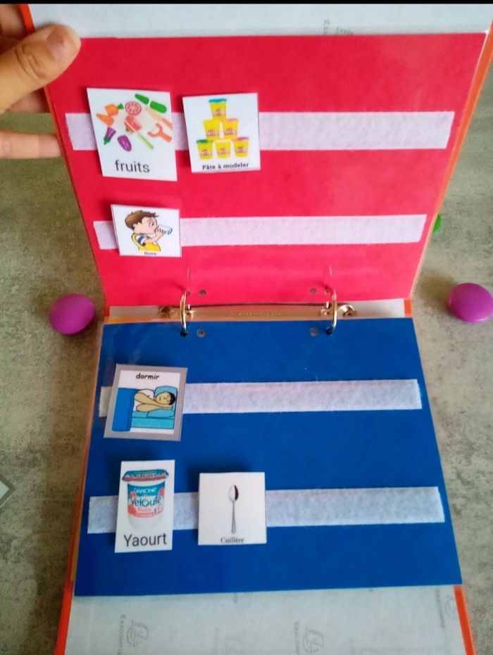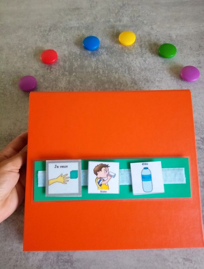 Neuf classeur pour communication avec pictogrammes type pecs makaton etc - bande phrase pour que l'enfant puisse se déplacer pour faire sa demande -4 intercalaires 17x22 cm plastifiées et bandes de velcro doux au recto et au verso de chaque intercalaires ( me préciser si vous avez besoin du rêche ) Vendu sans pictos Pictogrammes disponibles dans mes autres annonces, n'hésitez pas à créer un lot je vous ferai un prix 😉 Me contacter pour les couleurs disponibles de classeur 5€ pour 2 intercalaires supplémentaire Autiste autisme TSA Ted tdah caa dys uema sessad Aesh AVS crèche école podd aba teacch logopédie orthophonie Ulis apraxie handicap CMP CMPP cattp itep bee82100