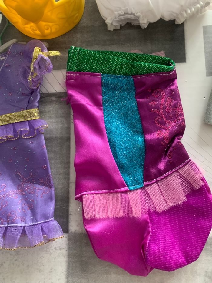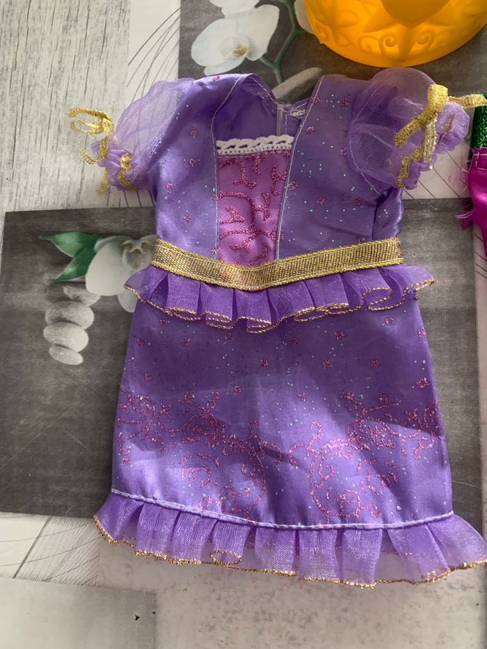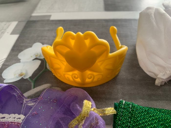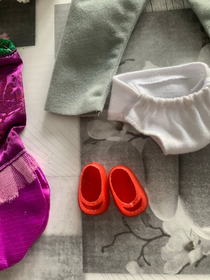 Lot vêtements/chaussures/accessoires pour poupée en bon état. Je ne sais pas c’est pour quel poupée. Quelques dimensions: Robe (10 cm pour h 17 cm env.) queue ( 9 cm pour h 17 cm env.) pantalon (6 cm pour h 16 cm env.) couronne (7 cm sur 6 cm env.) chaussures (3.5 cm x 2 cm env). La queue est décousu à un endroit. Pas de vente à l’unité.
