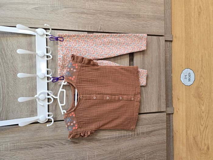 Lien direct vers les tailles équivalentes dans mon dressing : #fdhsarah24mois #fdhsarahSGMJ 📜 Ensemble comprenant : - Chemisier en gaze de coton chocolat avec des broderies sur les épaules de fleurs dans les tons rouge, bleu gris et mauve. Ref : KAIMI - Legging fleuri dans les tons bleu gris, rouge tomette et mauve sur fond vanille. Ref : Collection : Sur les Routes de Dordogne Taille 📏 : 24 mois État 🔍 : Très bon état Marque 🏷️ : Sergent Major Je suis disponible pour toutes questions ou photos supplémentaires. 📦 L’envoi se fait le plus rapidement possible Bon Shopping #fdhxxx24xxx