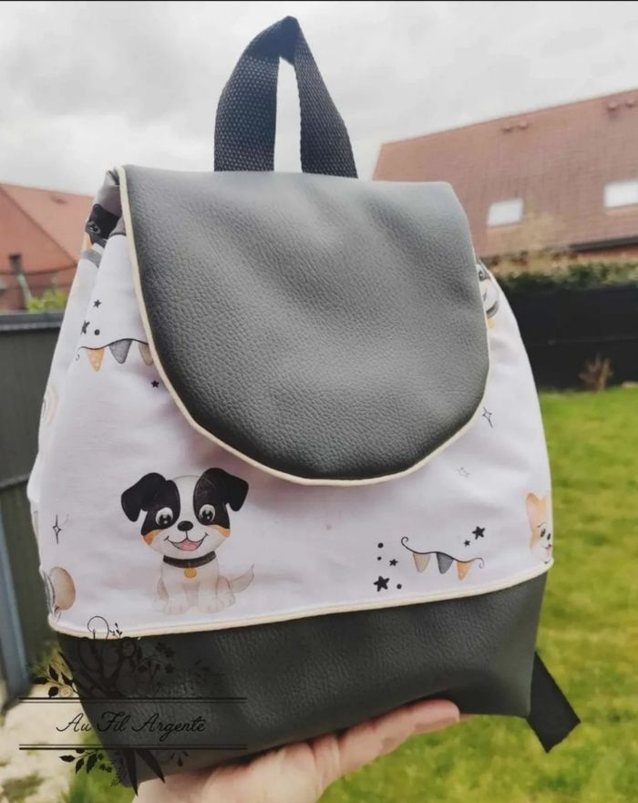 🎒 Petit sac à dos enfant – motif chiens – création Au Fil Argenté Joli sac à dos pour enfant, idéal pour la crèche, la maternelle ou les sorties. Design doux et ludique avec motifs chiens, facile à assortir. Détails : - Création artisanale Au Fil Argenté - Sac à dos fait main - Matière extérieure résistante (simili cuir + tissu imprimé) - Fermeture par rabat - Léger, pratique et confortable pour un enfant - État : neuf / jamais utilisé Parfait pour transporter un doudou, un goûter ou quelques affaires essentielles. Envoi soigné et rapide. Disponible pour toute question.