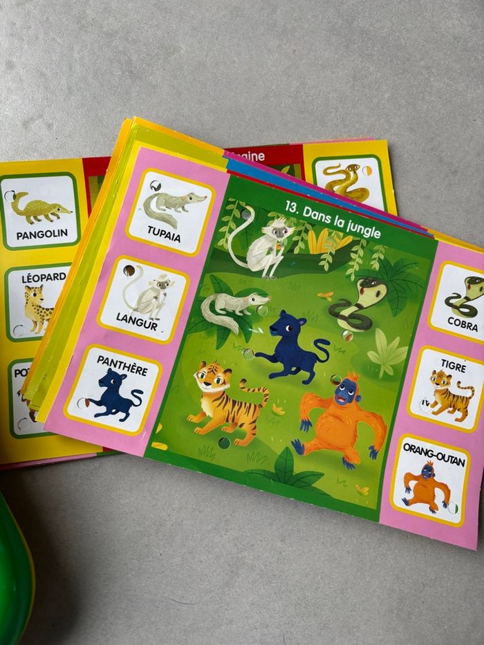 Jeux éducatifs électronique. L’enfant a plusieurs fiches choisis celle qui lui convient et avec les petites carottes, il doit appuyer sur les boutons pour faire correspondant l’image idéale pour les petits et travailler la motricité ainsi que l’apprentissage en parfait état.