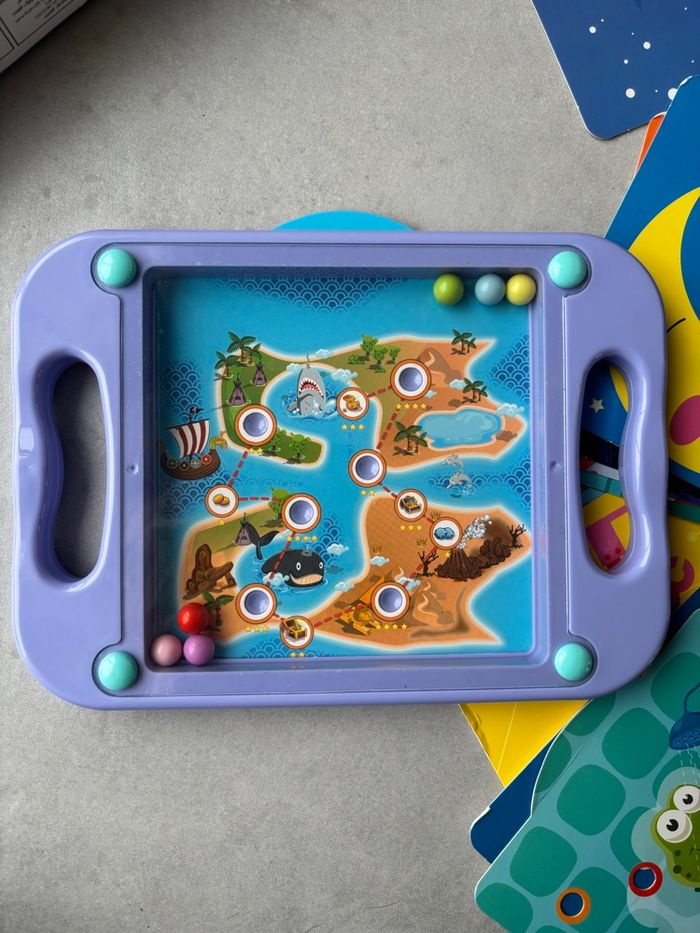 Jeux de société avec plusieurs fiches où il faut mettre les poules dans les différents trous, apprend la patience, la motricité fine en parfait état
