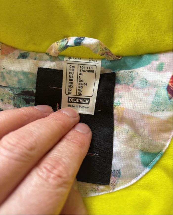 Manteau de ski Décathlon Taille XL 2 poches avec fermeture sur le côté 1 poche intérieur avec fermeture 1 poche sur la manche avec fermeture 1 poche filet à l’intérieur #grandetaillelucie160985