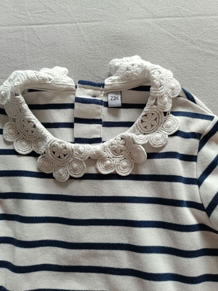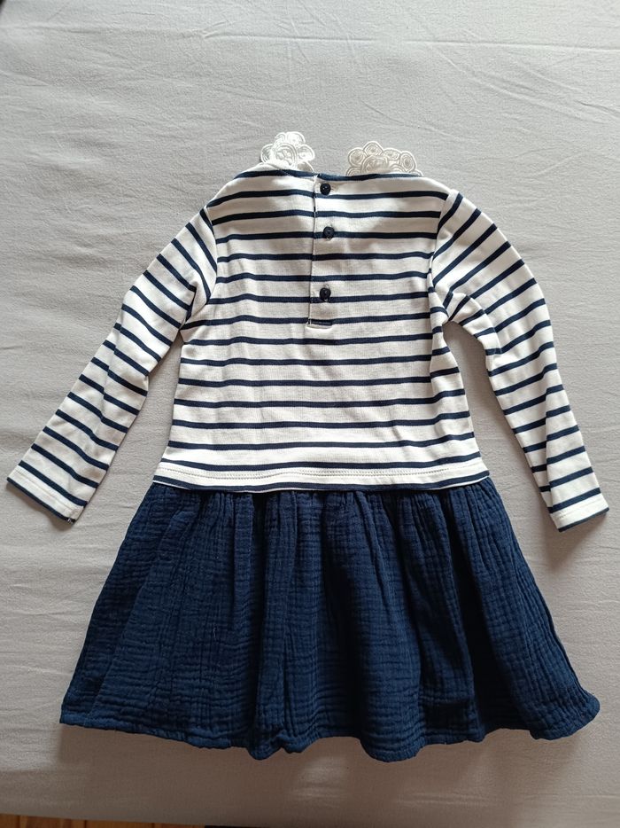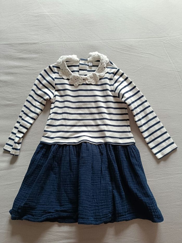 Robe rayée marine bleu et blanc. Jupe bleu marine. Très bon état