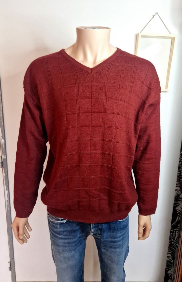 Bonjour ! Ce pull bordeaux texturé est un basique efficace pour votre vestiaire. Sa maille quadrillée apporte du relief tout en conservant un look décontracté idéal pour la saison. ​Style : Casual / Classique ​Coupe : Ajustée ​Sexe : Homme ​Taille : XL (Taille étiquette 6, correspondant à un XL standard en 2026) ​Longueur : 71 cm ​Largeur (aisselle à aisselle) : 56 cm ​L'article est en très bon état. On note seulement de légères peluches d'usage naturel sur la maille, sans aucun trou ni tâche. ​#homme #tricot #bordeaux #mode #trend #tendance #quality #qualité #casual #classique #gentleman