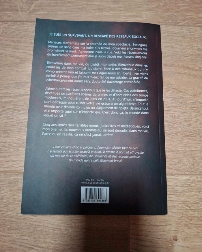 Plongez dans les coulisses sombres des réseaux sociaux et de la télé-réalité avec "Survivant des réseaux sociaux", un témoignage poignant signé Jeremstar, influenceur et ex-chroniqueur télé. Ce livre dévoile le journal intime de Jeremstar, victime de cyberharcèlement, exposant les dérives de la célébrité numérique, les abus dans le monde de la télé-réalité et les coulisses peu connues de l’influence digitale. 📦 État : Très bon état – couverture impeccable, comme neuf. ✅ Idéal pour les amateurs de documentaires, témoignages, développement personnel ou curieux des dessous du monde des influenceurs. 📚 Éditeur : Hugo Doc 🗓️ Langue : Français 💨 Envoi rapide & soigné ! #livrejeremstar #survivantdesréseauxsociaux #livretelevision #teleréalité