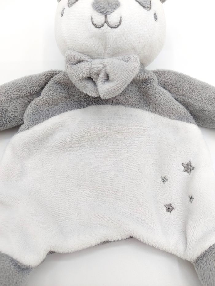 Doudou plat ours panda blanc gris SUCRE D’ORGE étoiles argent noeud - photo numéro 3