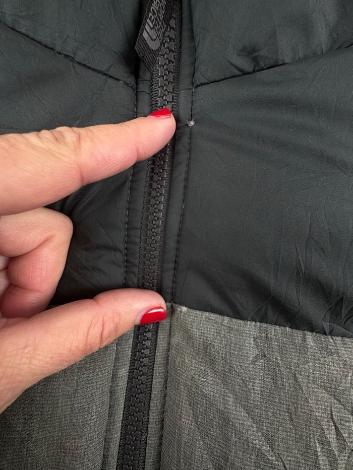 Doudoune The North Face 550 – Junior L / XS adulte Coloris : noir & gris chiné Doudoune The North Face 550 chaude et confortable, taille L enfant, pouvant convenir à un XS adulte (voir mesures sur les photos). ✔️ Coupe courte, idéale pour l’hiver ou la mi-saison ✔️ Capuche intégrée ✔️ Fermeture zippée ✔️ Deux poches latérales ✔️ Intérieur doublé effet polaire, très doux et bien chaud ✔️ Logo brodé à l’avant et à l’arrière 📏 Mesures visibles sur les photos (à plat) ⚠️ État / petits défauts (voir photos) : • mini accroc discret • petite zone recousue, peu visible une fois portée 👉 Défauts uniquement esthétiques, la doudoune est solide, fonctionnelle et encore très agréable à porter. 💰 Prix ajusté en conséquence 📦 Envoi rapide et soigné 💬 N’hésite pas à me contacter pour d’autres photos ou mesures