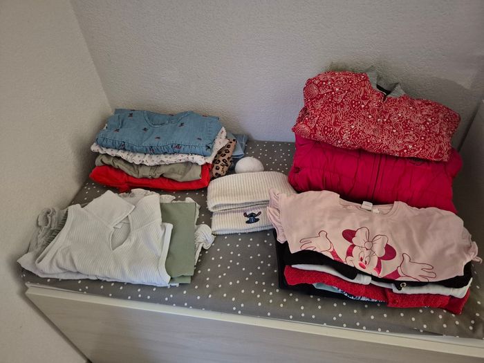 Lot de vêtements pour fille taille 4 ans (Manteaux, robes manche longue et courte, tee-shirt manche longue et court, panthalons, short, gilet, bonnet et cache cou)