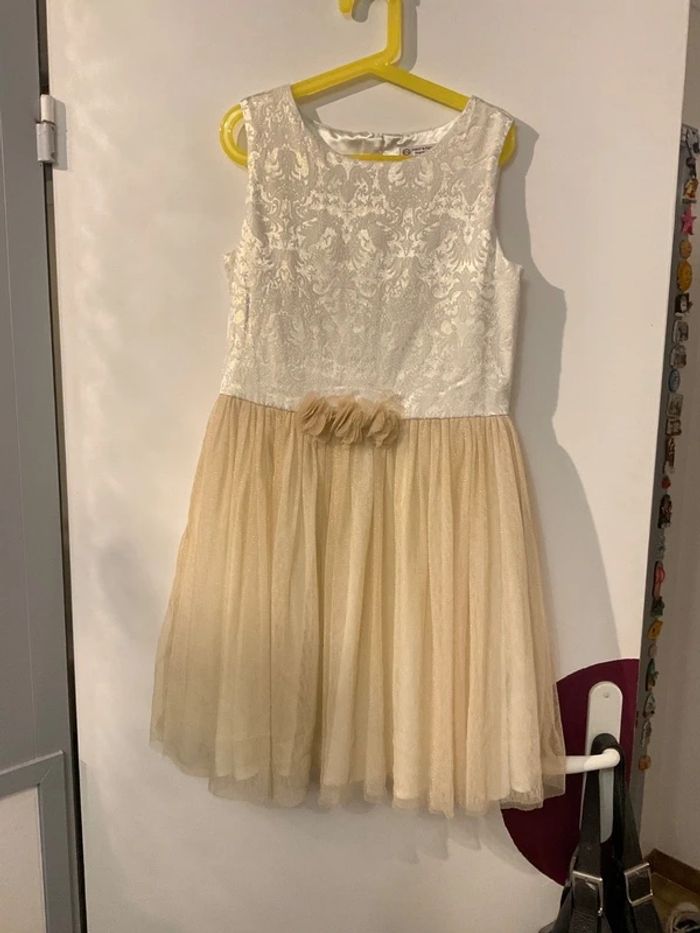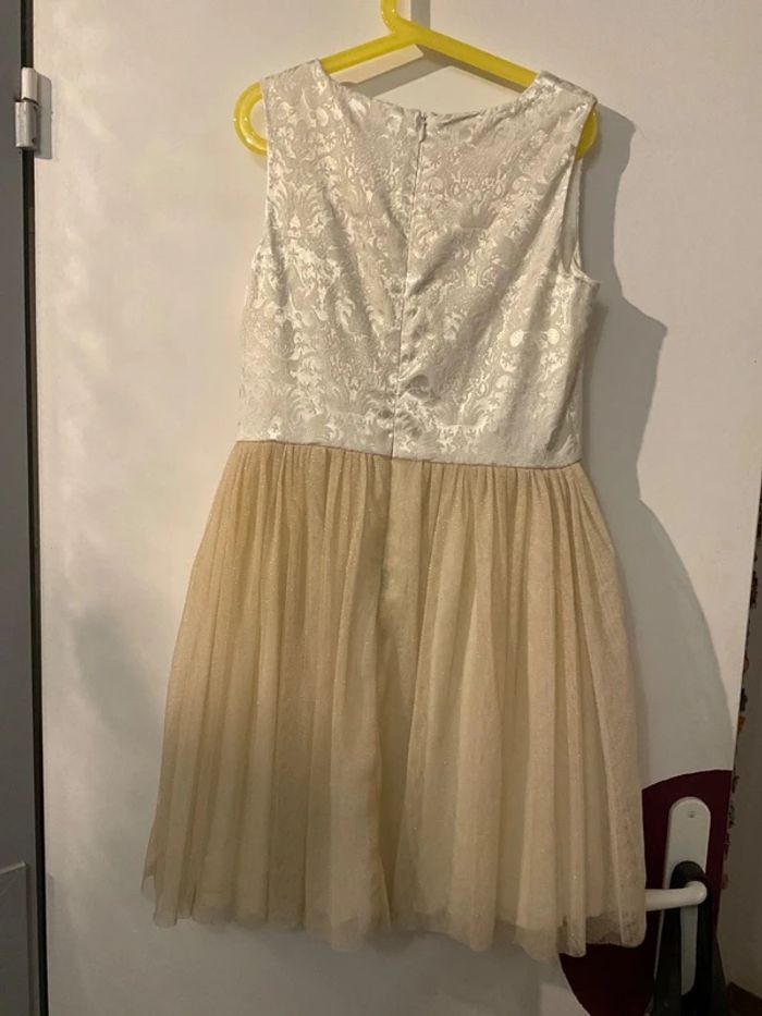 Magique robe de fête Sans manche Jupe voilage triple ( 1 tulle or, 1 tulle blanc, 1 doublure tissus) En excellent état