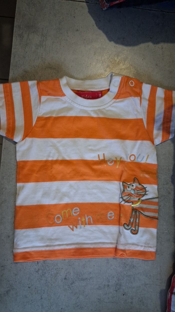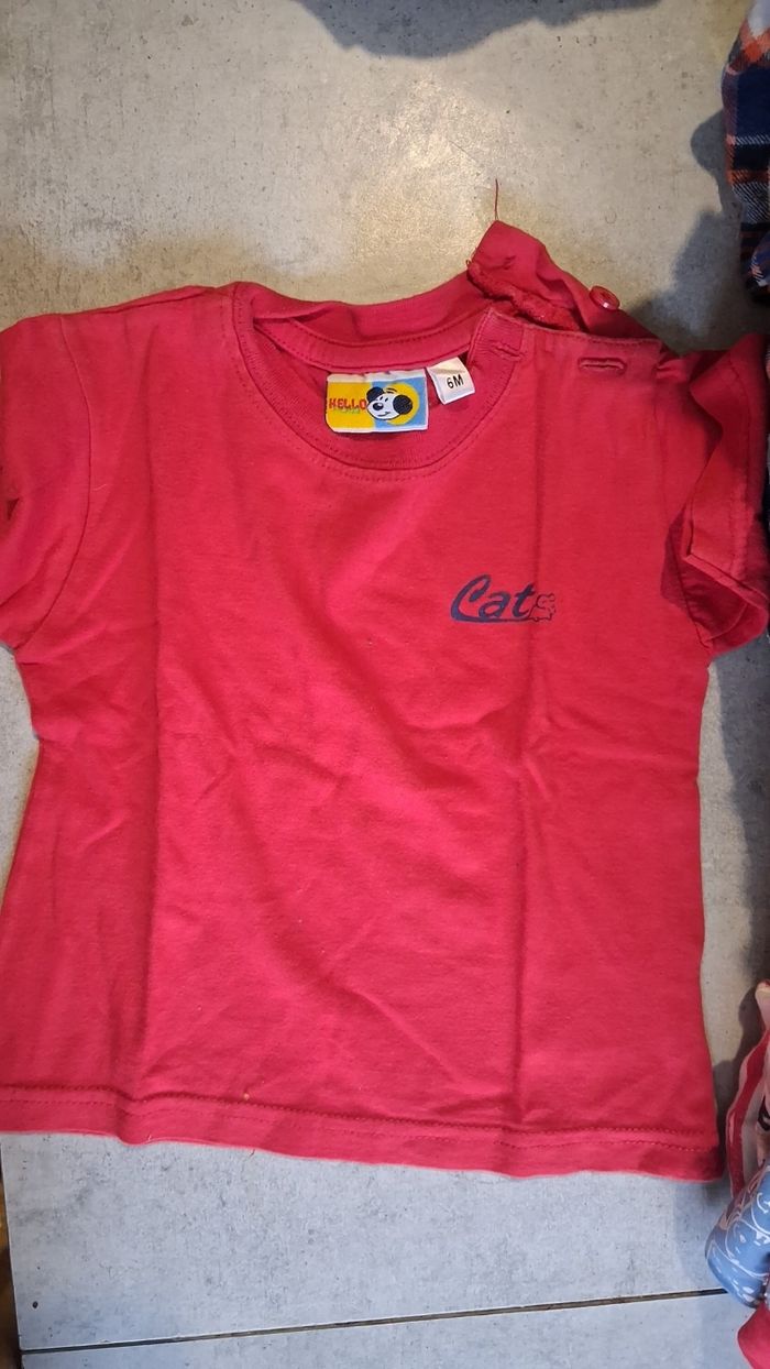 Bonjour vend ce lot de 8 t-shirts a manche court Taille 6 mois Pas de trou ni de tache, plusieurs marques differentes .