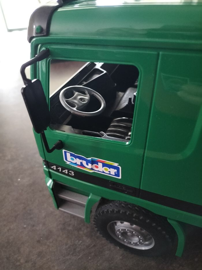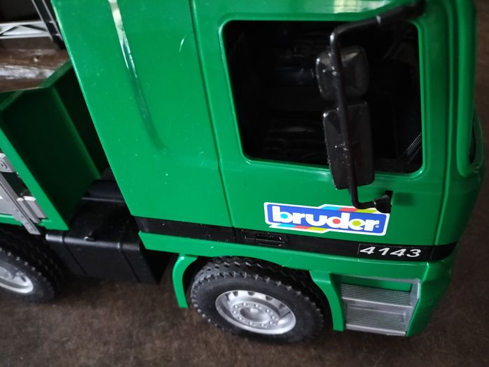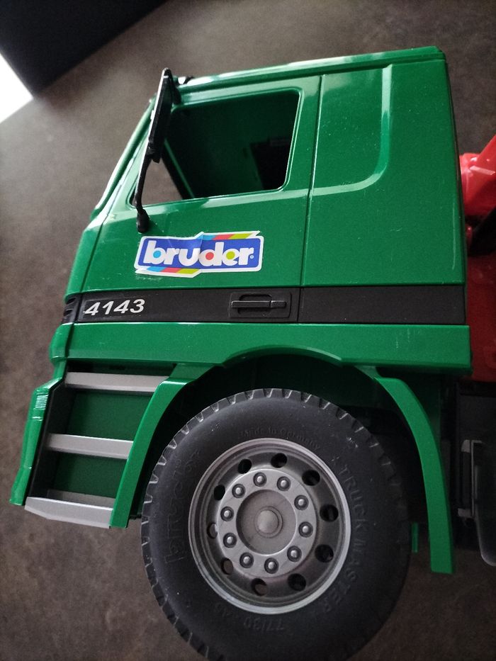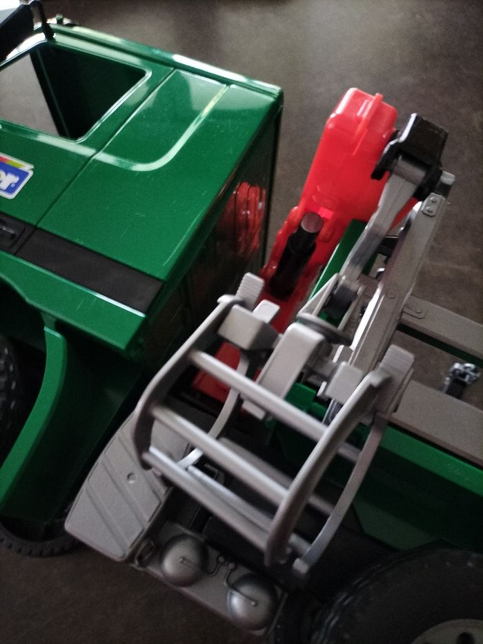 Camion en plastique dur Bruder échelle 1.16 ème En très bon état Juste le grappin de cassé Possibilité d'en acheter un environ 4€