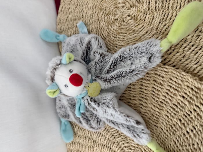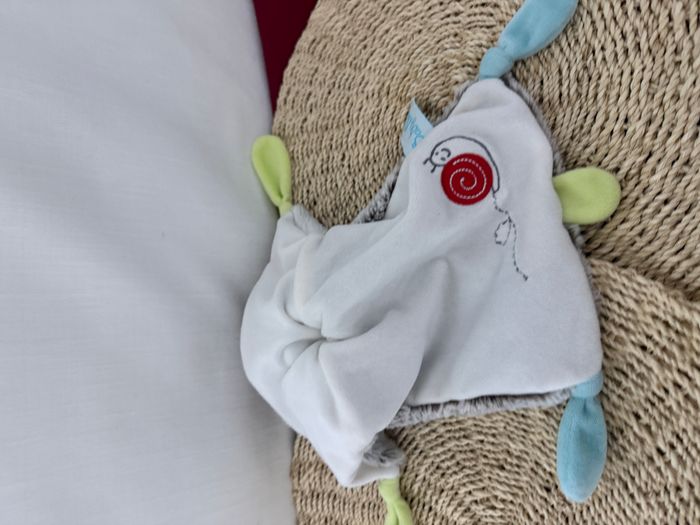 Doudou plat hérisson Gaston blanc beige bleu vert BABY NAT - photo numéro 6